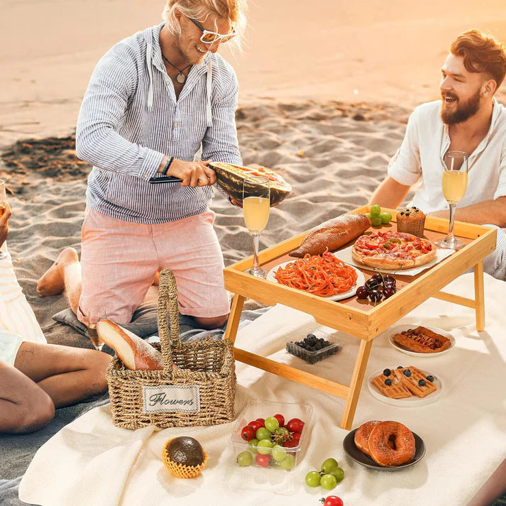 • Let's enjoy delicious breakfast in comfort thanks to this bamboo bed tray with retractable legs for secure positioning and easy to balance on any surface, foldable legs for easy and space-saving storage. Built-in handles for easy and safe transport.